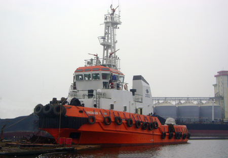 Tugs have a way of moving around over the years. While the Indonesians bult copious numbers of tugs them selves the government run port operator PT. Pelabuhan Indonesia III is the owner of a fine big Dutch-built tug KT Anoman V. Built in the early 1990s the tug has undergone some modifications and now has three fire monitors in addition to extra bow fendering to make it better suited for port operations.